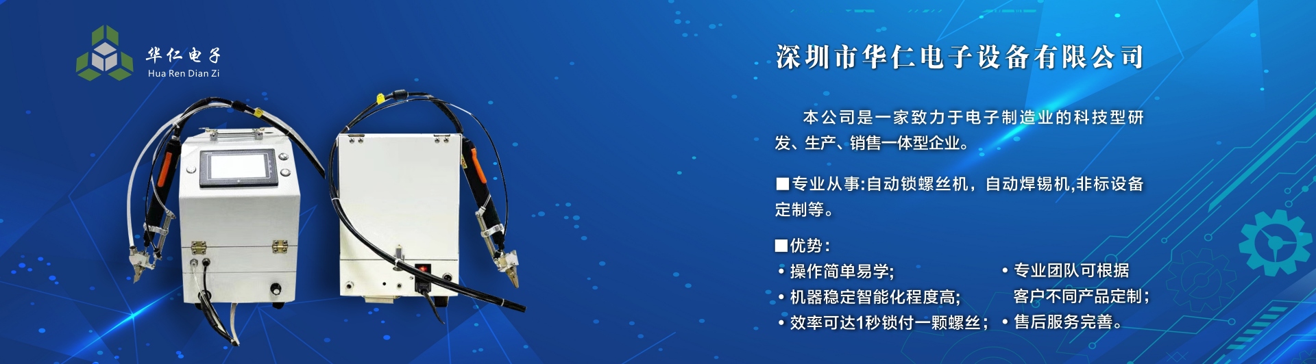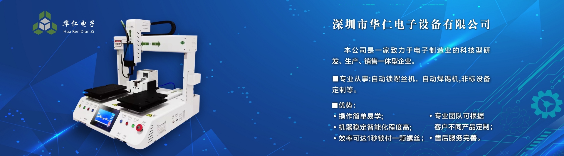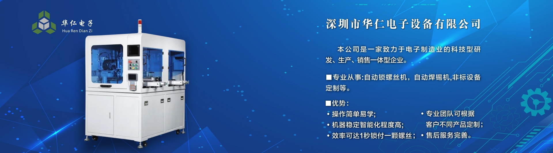 深圳市華仁電子設(shè)備有限公司是一家致力于電子制造業(yè)周邊設(shè)備的科技型研發(fā)、生產(chǎn)、銷(xiāo)售一體的企業(yè),專(zhuān)業(yè)從事:自動(dòng)鎖螺絲機(jī);自動(dòng)焊錫機(jī);非標(biāo)設(shè)備定制機(jī)等,公司長(zhǎng)期以來(lái)在行業(yè)中積累了豐富的經(jīng)驗(yàn),擁有專(zhuān)業(yè)的研發(fā)、技術(shù)、銷(xiāo)售支持工程團(tuán)隊(duì)、各高級(jí)技術(shù)人才為客戶(hù)提供優(yōu)質(zhì)產(chǎn)品和服務(wù),同時(shí)不斷吸取國(guó)內(nèi)外先進(jìn)技術(shù),更準(zhǔn)確及時(shí)地為客戶(hù)提供優(yōu)質(zhì),性?xún)r(jià)比高的產(chǎn)品、公司以專(zhuān)業(yè)的售前、售中、售后服務(wù)贏(yíng)得了客戶(hù)的信賴(lài)和好評(píng),為客戶(hù)提供先進(jìn)自動(dòng)化設(shè)備一體式解決方案、